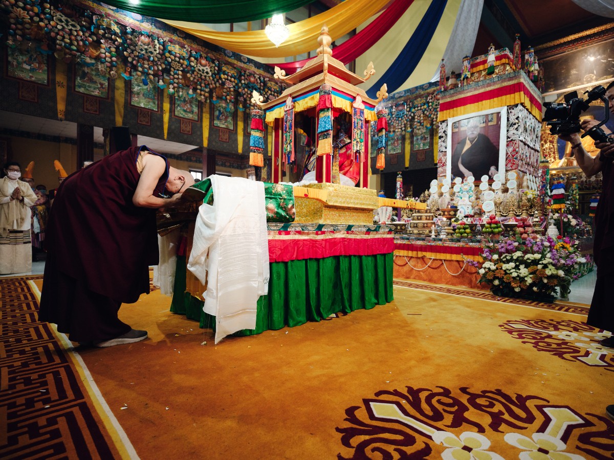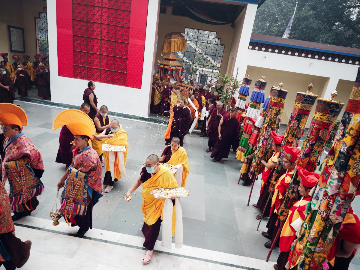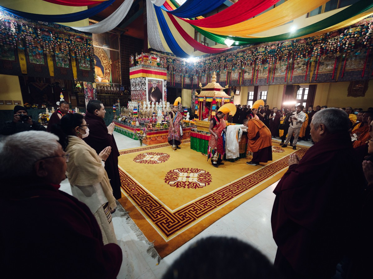 Karmapa and the Sangha then offered the Kudung Chopay Choga, a puja performed to mark the formal reception of the Kudung.