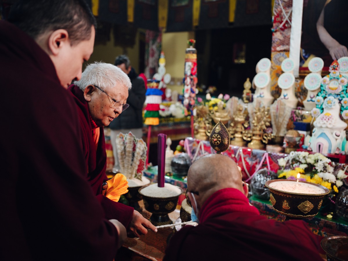 From the 30th of December onwards, and until the completion of the 49 days, the pujas of Jinasagara, Chakrasamvara, Vajrayogini, the Hundred Peaceful and Wrathful Deities, Minling Vajrasattva, Buddha Vairocana, and Buddha Amitabha are being accomplished at KIBI for one week each.