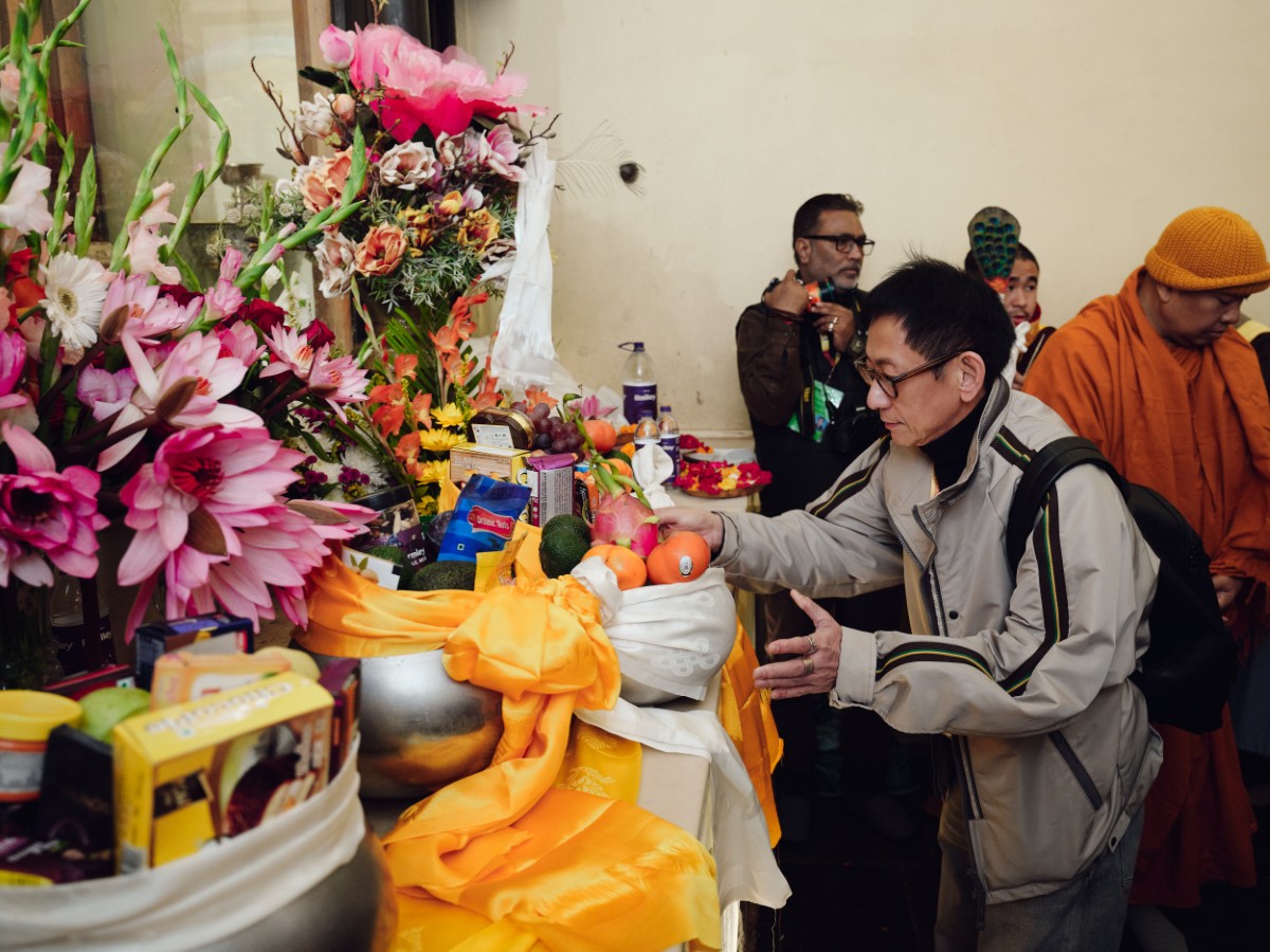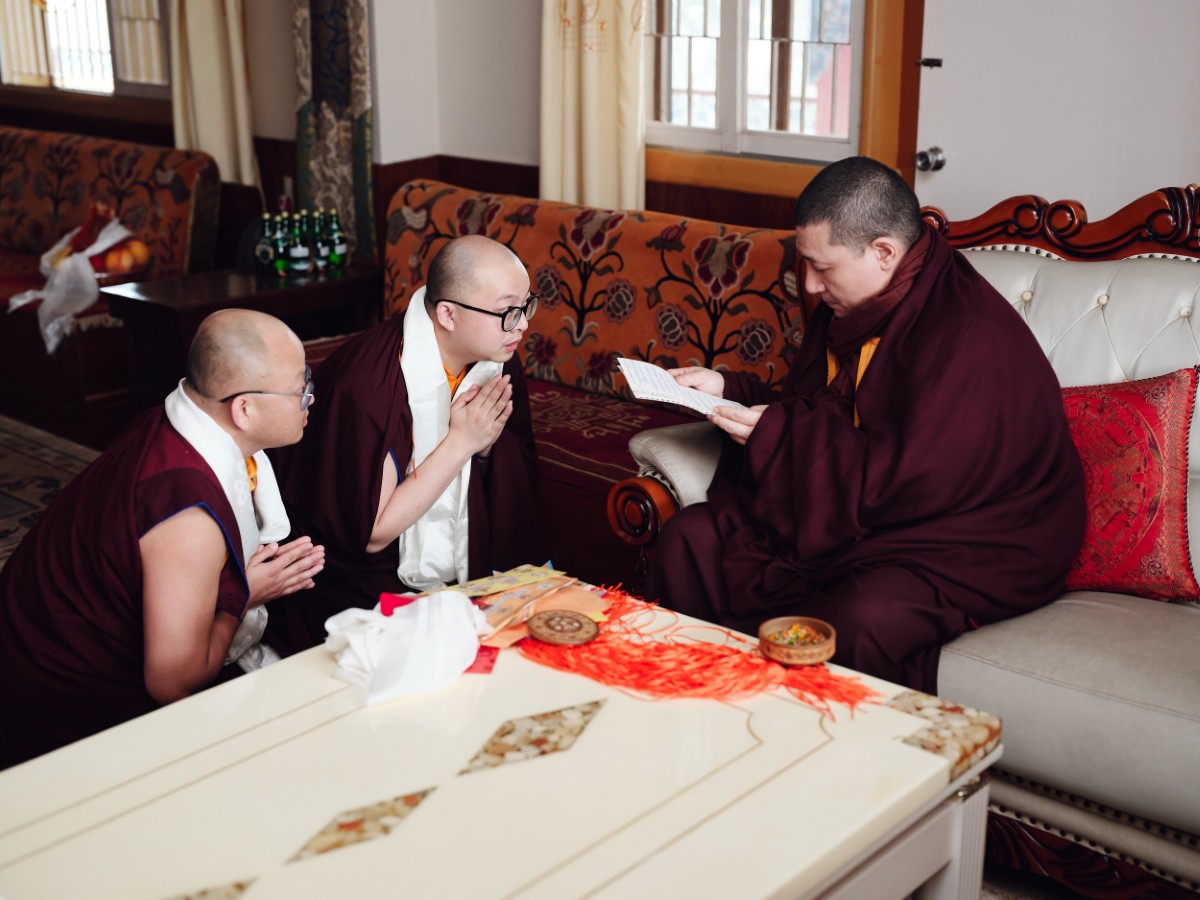 Every day, during and between the sessions, groups of monastic and lay practitioners from all corners of the globe come to pay their respects to Karmapa, and receive his blessing and advice.