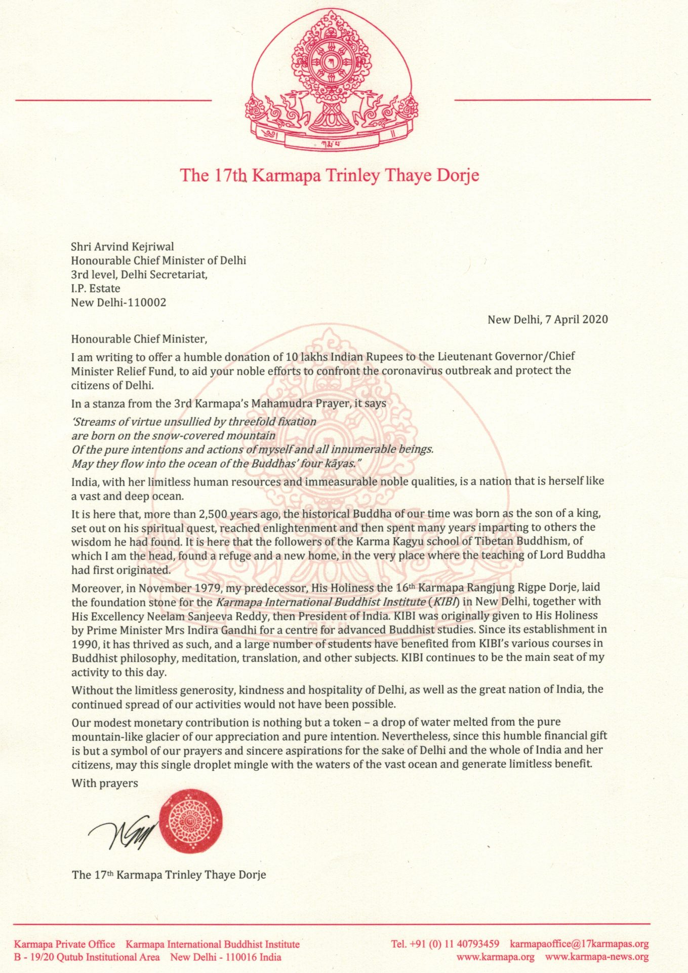 Karmapa’s donation letters
