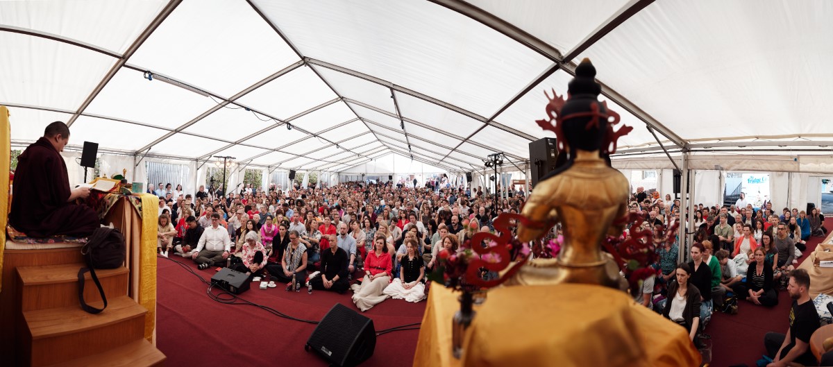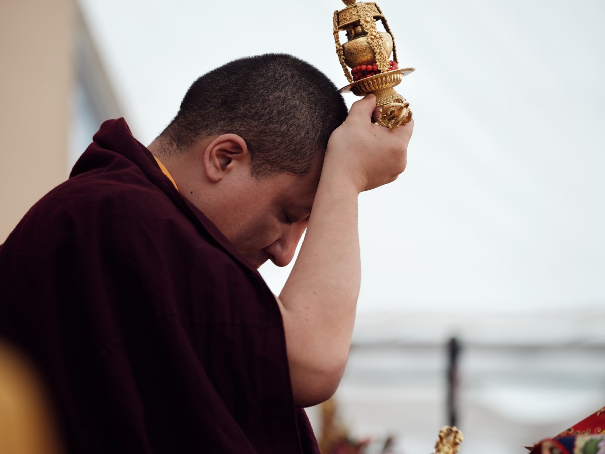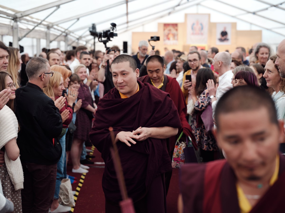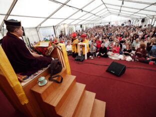 On Sunday Karmapa transmitted the empowerment of Buddha Amitayus, one of the wisdom aspects embodying longevity, to a gathering of over one thousand practitioners. Once again, he gave detailed explanations on the meaning of the practice and the various stages of the ritual, with a particular focus on the practice of refuge and Bodhicitta.