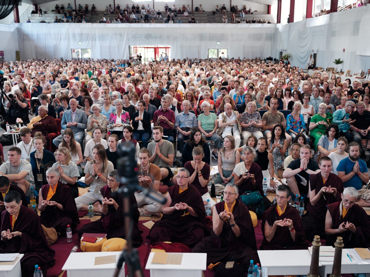 On the 16th of July, Thaye Dorje, His Holiness the 17th Gyalwa Karmapa, transmitted the Buddhist Refuge, the Bodhisattva Vows, and the empowerment of Buddha Amitabha, the Lord of the Pure Land of Sukhawati, to a gathering of about 1,600 practitioners at Werner-Seelenbinder-Halle in Bad Salzungen. Karmapa gave detailed explanations on the various stages of the practice, to help the assembled practitioners be aware of the meaning of the ritual.