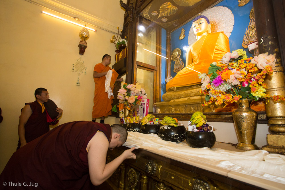 Karmapa opened the Kagyu Monlam Prayers at the Mahabodhi Stupa under the Bodhi Tree on 14 December. His Eminence 4th Jamgon Kongtrul Rinpoche, Karma Mingyur Dragpa Senge, and His Eminence Beru Khyentse Rinpoche conducted alongside Karmapa throughout the ceremonies.
