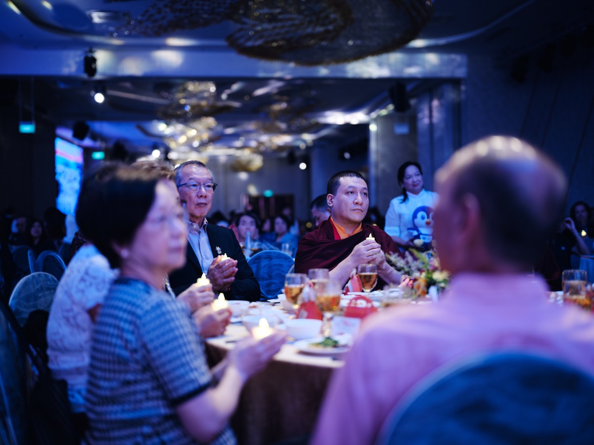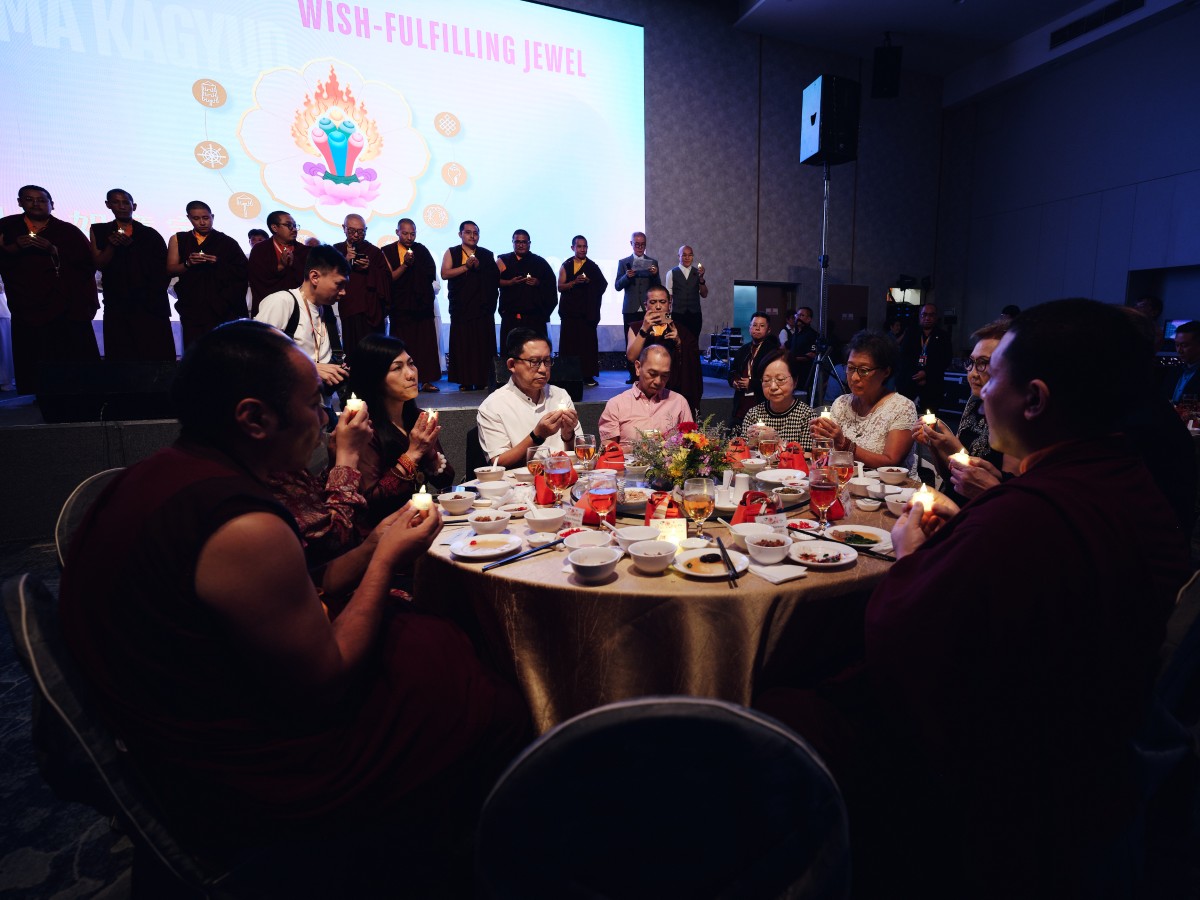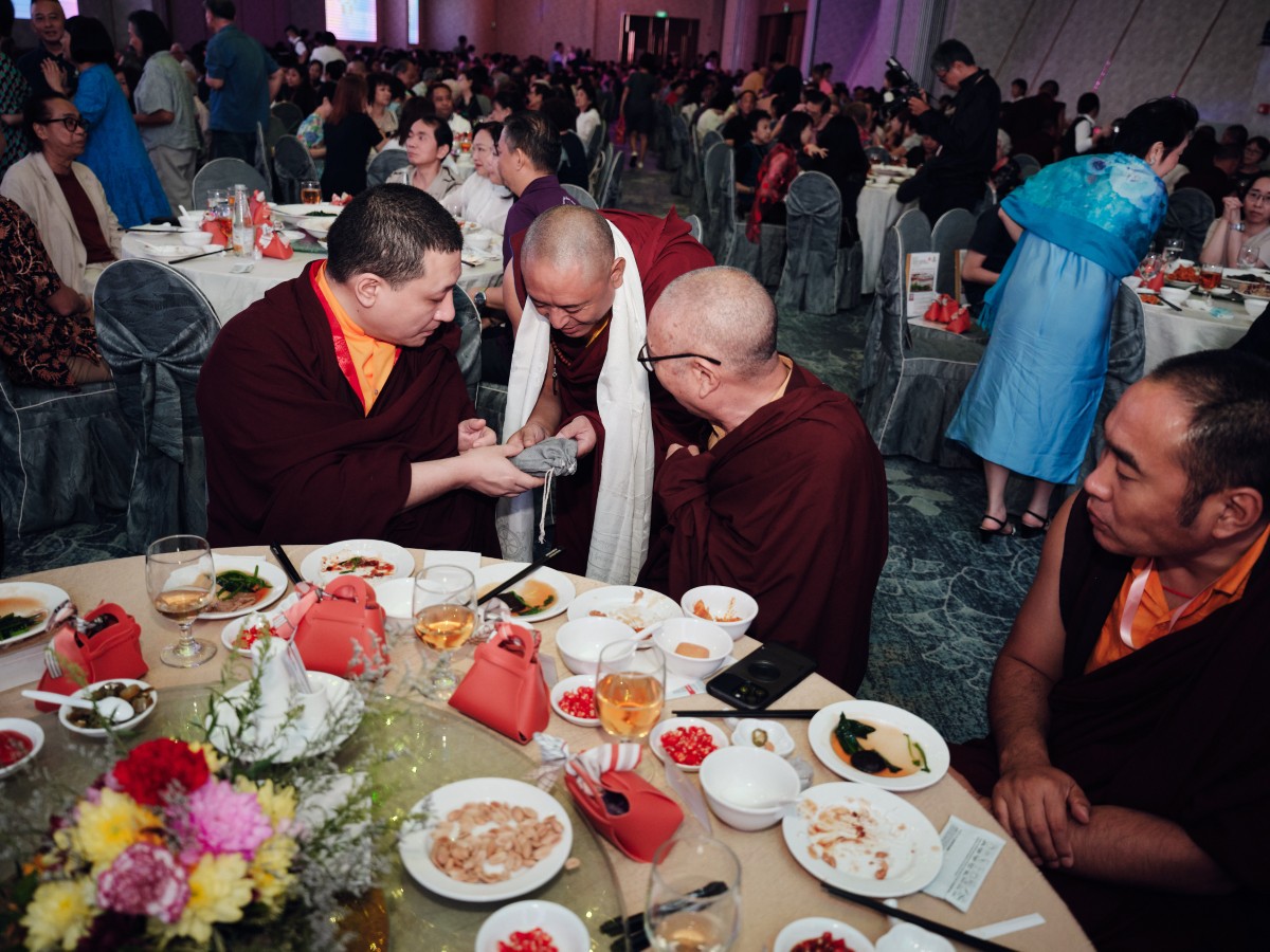 The event concluded on the evening of the 13th of September with a festive gala dinner at Singapore EXPO. The programme featured speeches by Ven. Shangpa Rinpoche and members of the Organising Committee, and the passing of tokens of appreciation to the main sponsors and supporters of the event. The vegetarian menu was accompanied by a programme of devotional songs and dances, a light show and a joint lamp offering in commemoration of the recently departed ‘Lama Rinpoche’, Venerable Maniwa Sherab Gyaltsen, with Venerable Shangpa Rinpoche leading the chant.