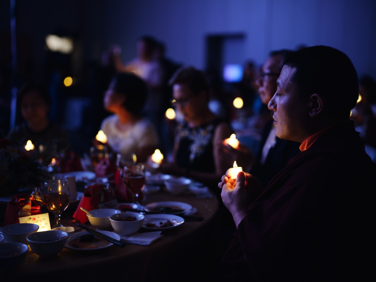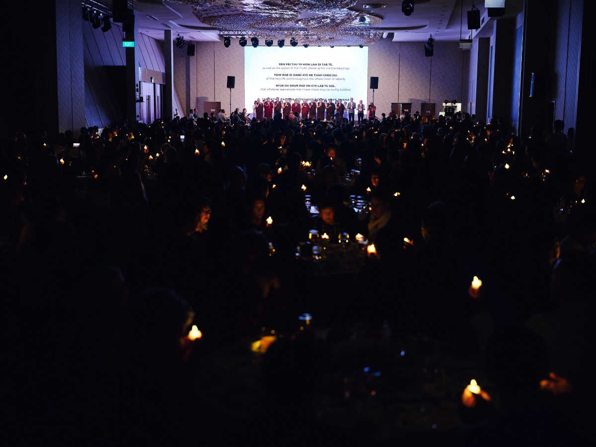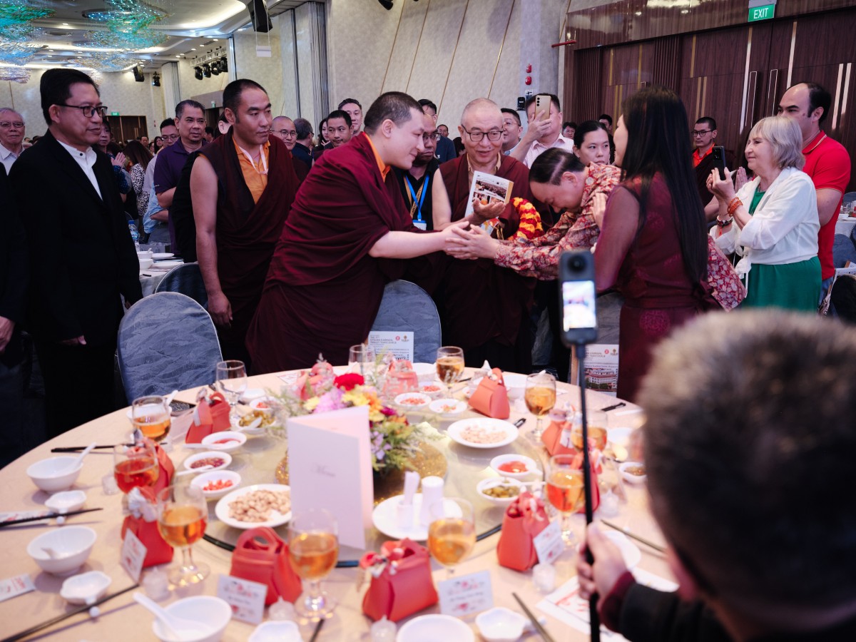 The event concluded on the evening of the 13th of September with a festive gala dinner at Singapore EXPO. The programme featured speeches by Ven. Shangpa Rinpoche and members of the Organising Committee, and the passing of tokens of appreciation to the main sponsors and supporters of the event. The vegetarian menu was accompanied by a programme of devotional songs and dances, a light show and a joint lamp offering in commemoration of the recently departed ‘Lama Rinpoche’, Venerable Maniwa Sherab Gyaltsen, with Venerable Shangpa Rinpoche leading the chant.