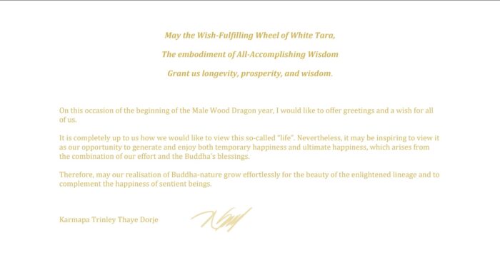 Thaye Dorje, His Holiness the 17th Gyalwa Karmapa, shares the following message on the occasion of Losar, Tibetan New Year, 2024.